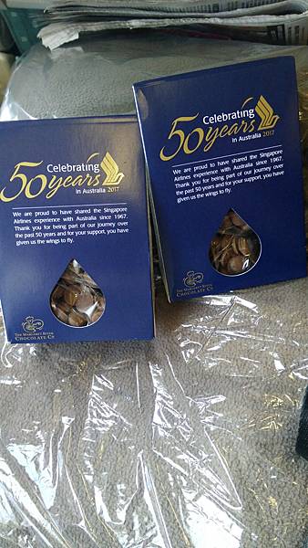 才剛上機就聽到廣播說這是新加坡航空50週年慶,所以每位乘客都有小禮物!!