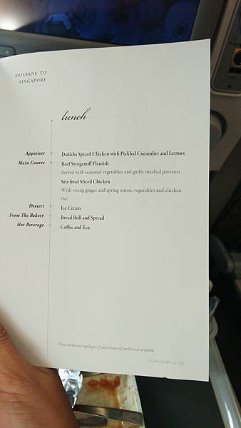 新加坡航空超棒,餐點好吃還必付冰品,重點是每次都會給你當班menu讓你提前選擇想吃的